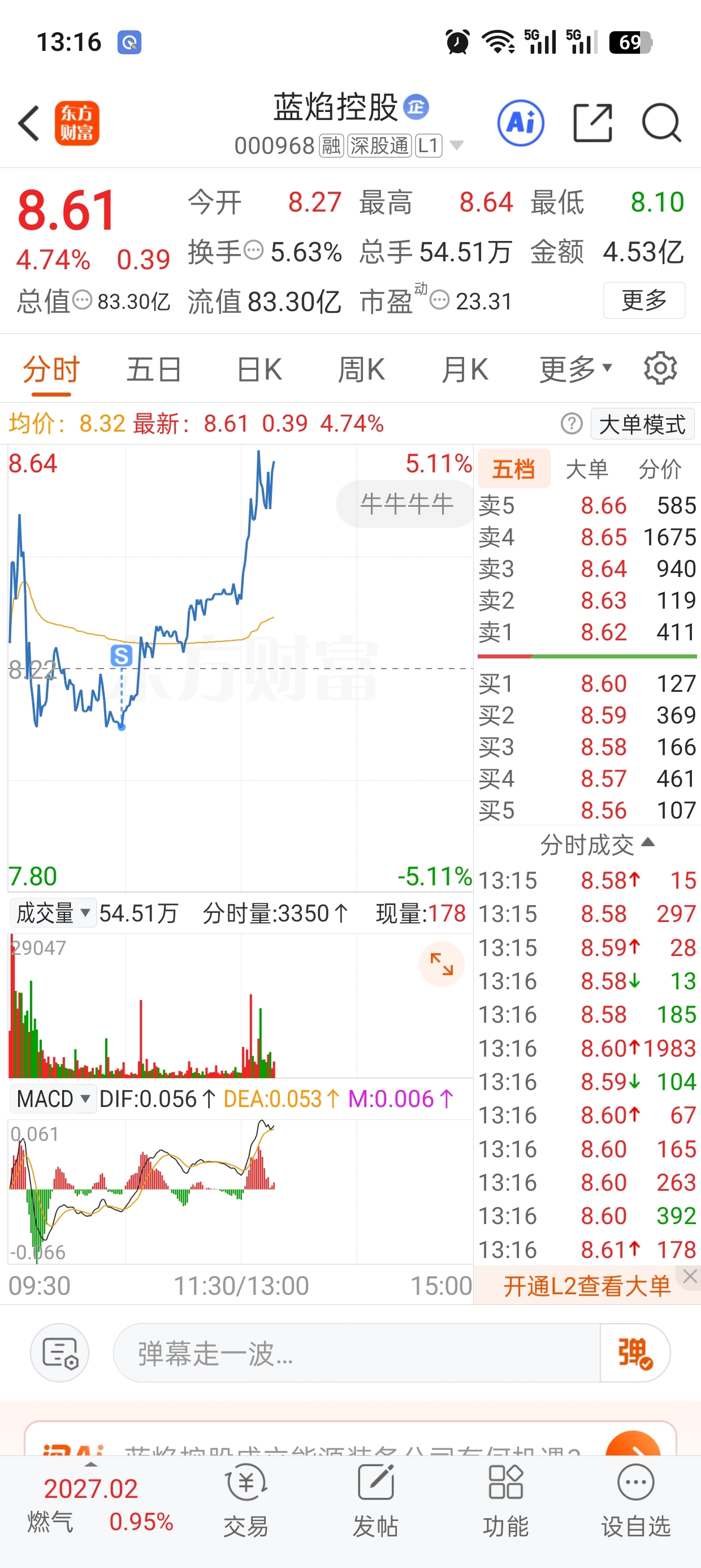 $蓝焰控股(SZ000968)$ 补仓买入,搞错弄成了卖出,我是个人才啊