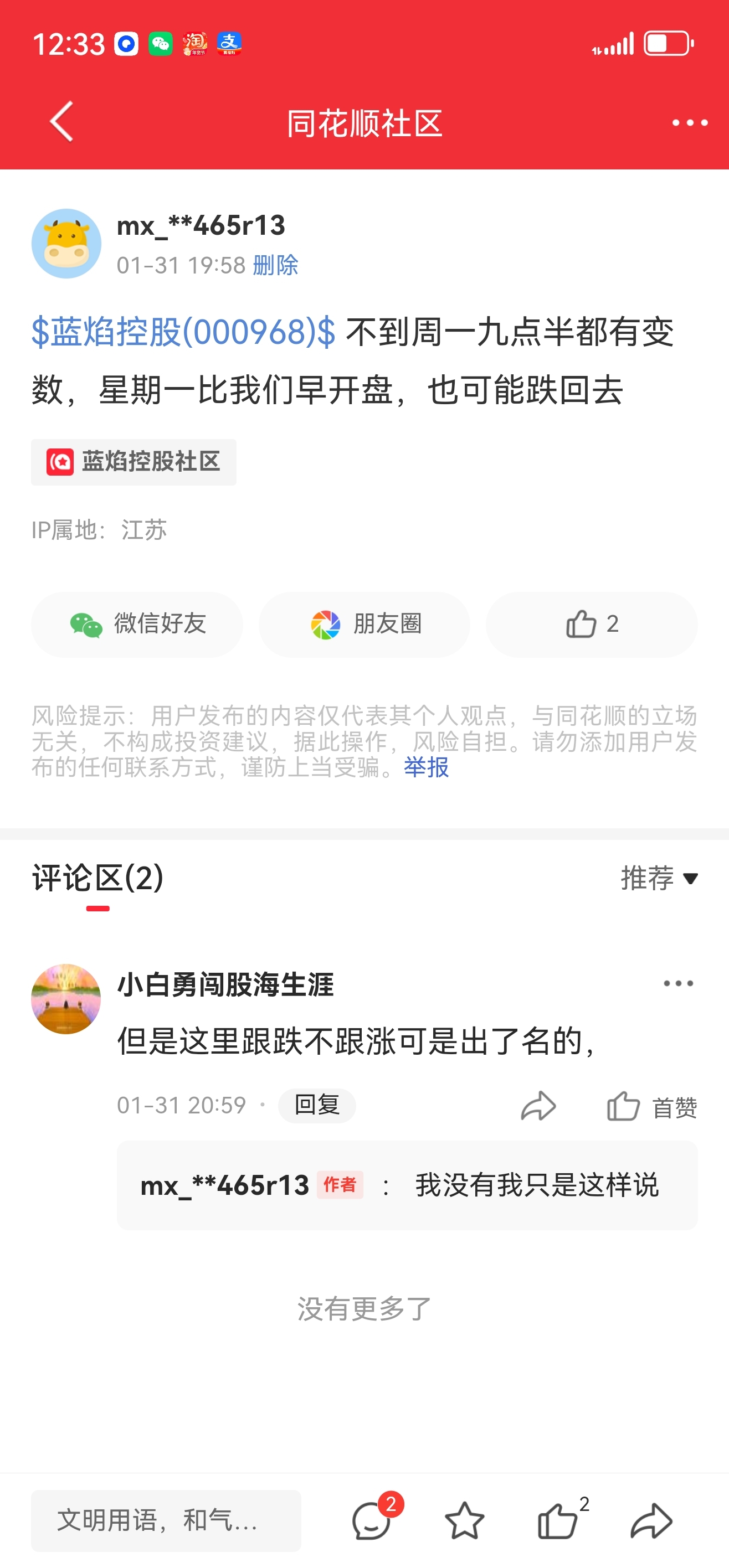 温馨提示: 1.根据《证券法》规定,禁止编造、传播虚假信息或者误导性信息,扰乱证券市场;2.用户在本社区发表的所有资料、言论等仅代表个人观点,与本网站立场无关,不对您构成任何投资建议。用户应基于自己的独立判断,自行决定证券投资并承担相应风险。《东方财富社区管理规定》