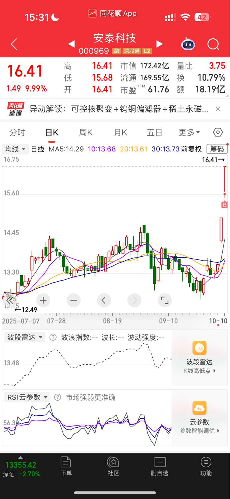 10月10日:买入安泰科技操作记录请勿跟票,你的赢亏自己负责。