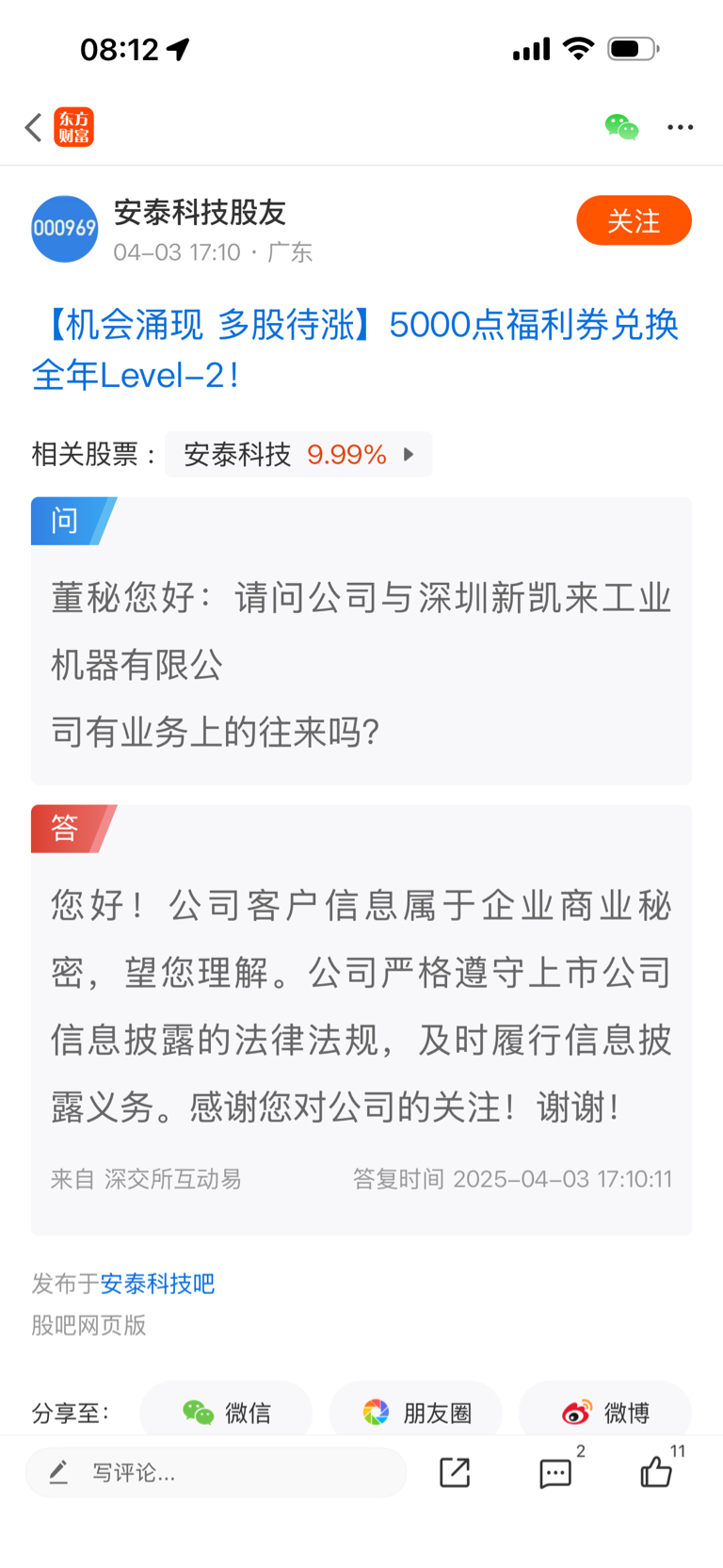 $安泰科技(SZ000969)$ 新凯来合作,看董秘回复,董的都懂: