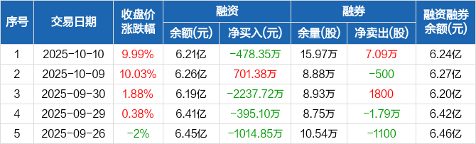 安泰科技:融资净偿还478.35万元,融资余额6.21亿元(10-10)