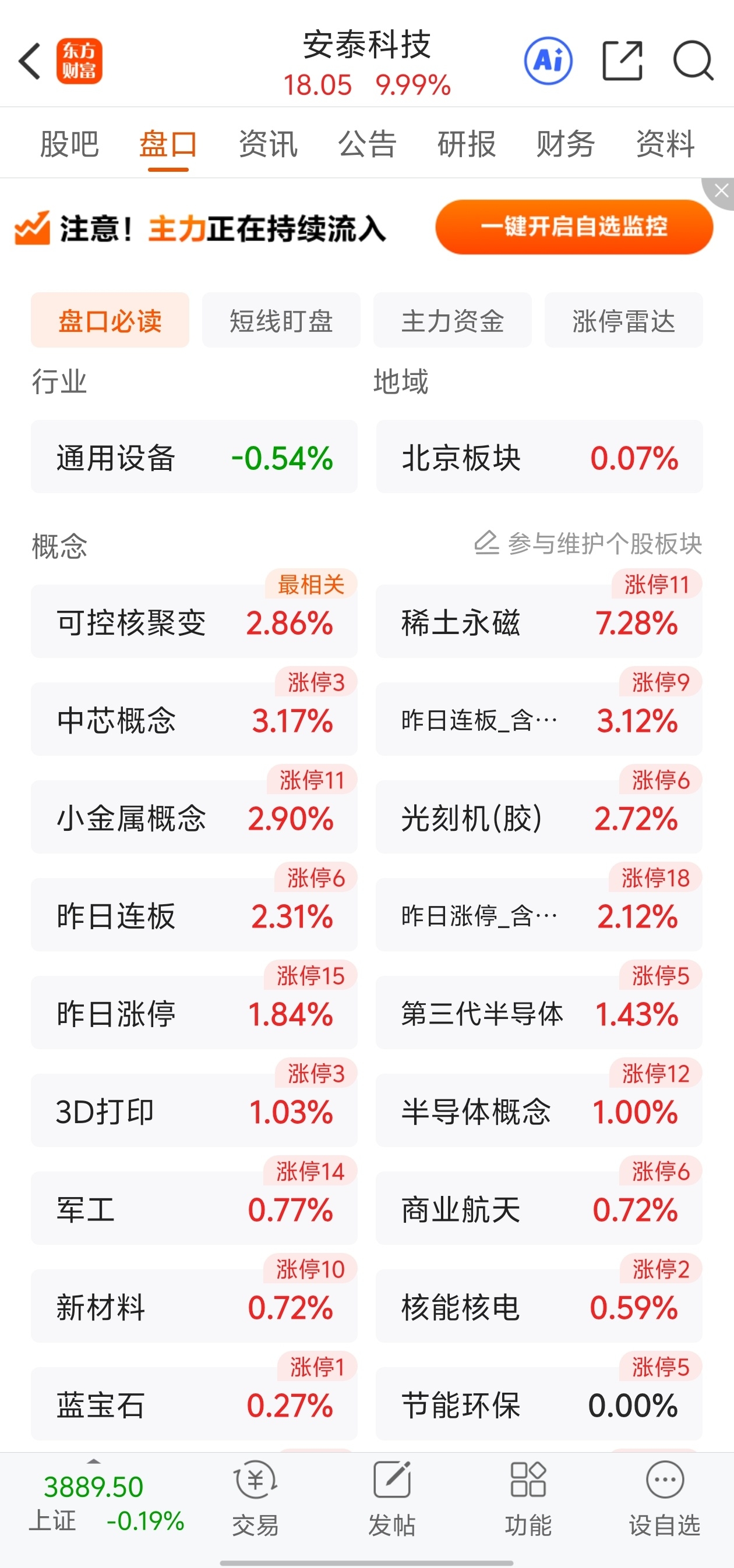 $安泰科技(SZ000969)$ 安泰概念相关板块,今天集体大涨,一己之力带动整个大盘,合锻就是典型的例子,安泰今天走稀土概念,合锻蹭了他的核聚变。