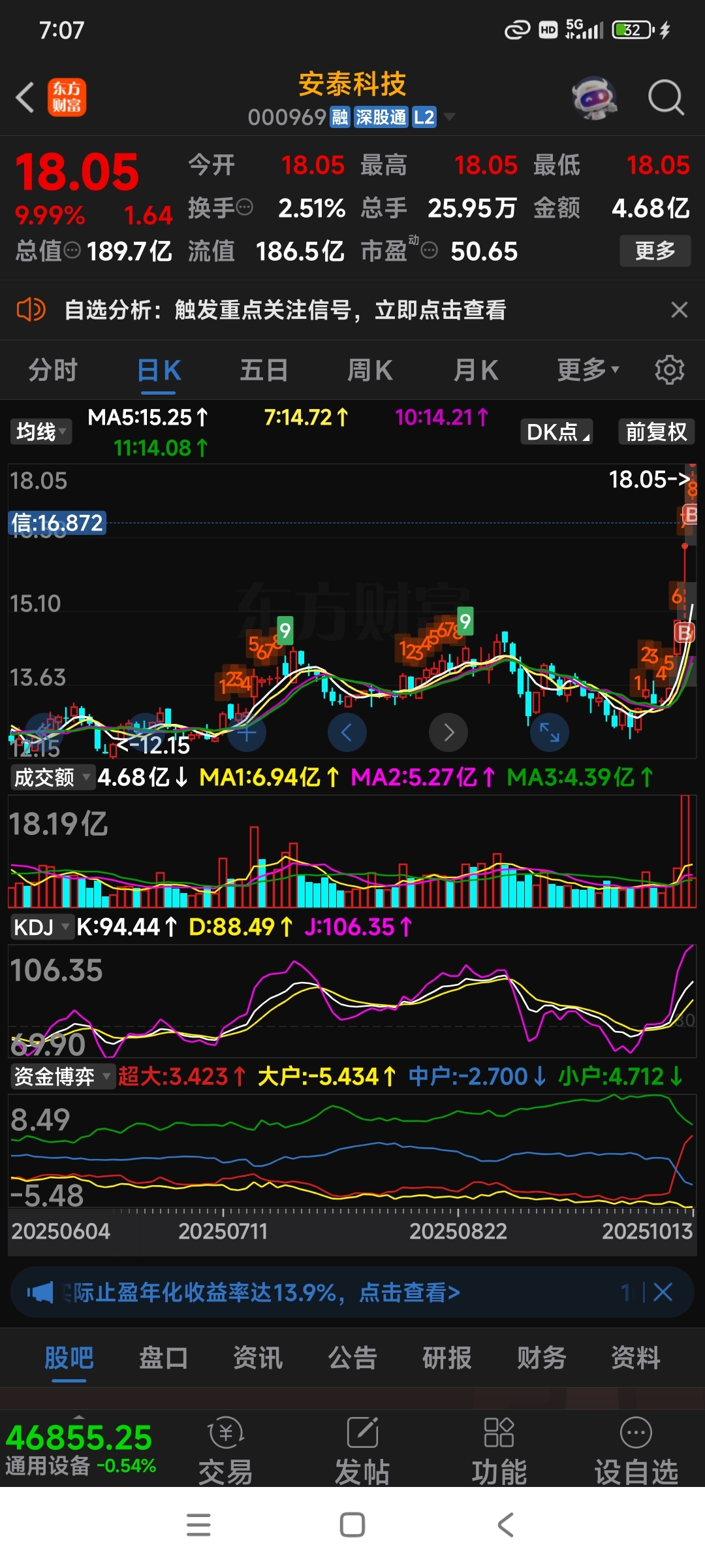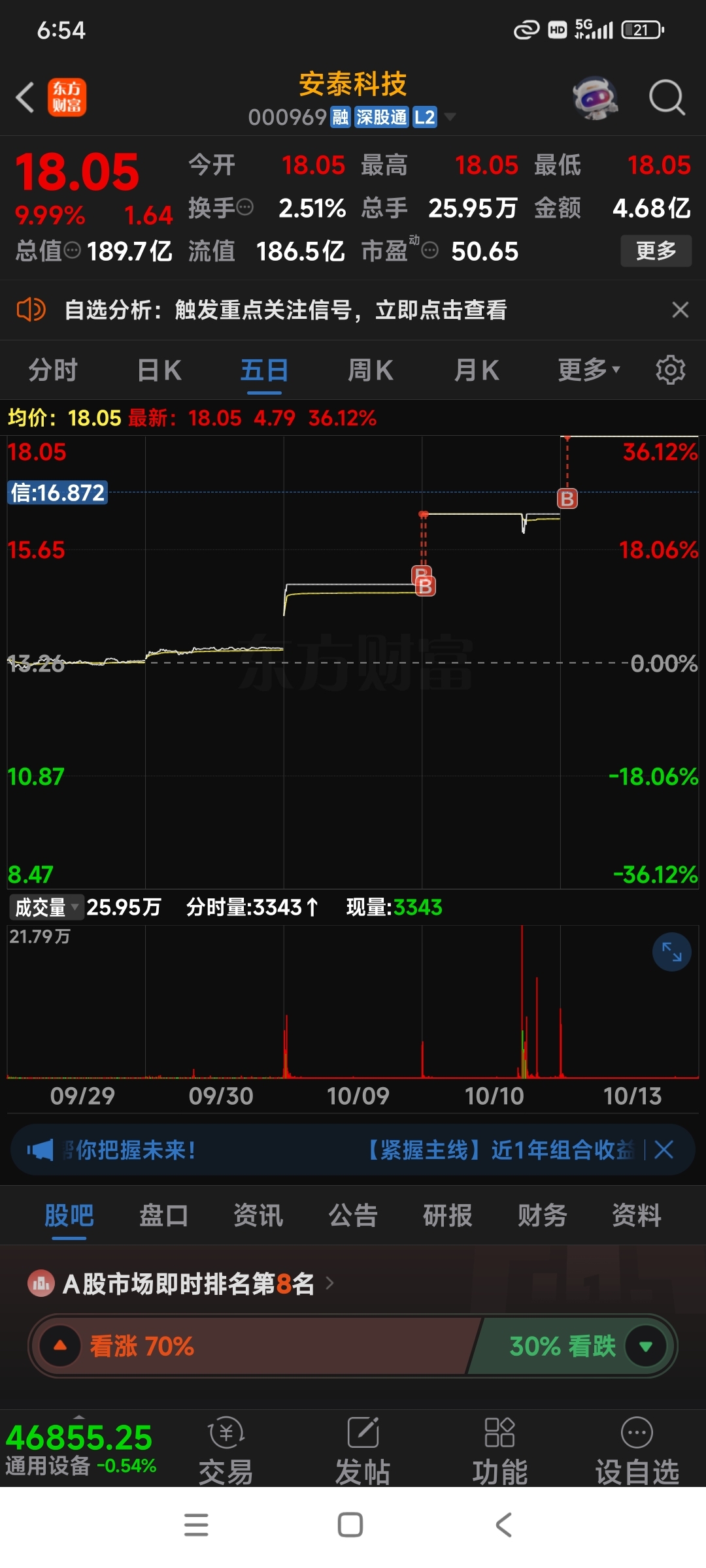 $安泰科技(SZ000969)$ 连续两日买入安泰,周五买是因为合锻隔夜单加大,不可能买到也不可能开板,而竞价阶段安泰卡掉了周四更强的永鼎,9点25后已经挂单了。而今天是9点21分后挂单的,预期今日安泰要强于合锻,因为要走稀土反制概念,9点20分后明显安泰更强,于是21分后直接挂单,开盘后9点44分成交。因为有身位在(二板),理所当然安泰成为稀土概念的龙一。明天,安泰理应隔夜单和开盘后封单更大才符合龙一的气质。写这个和没经验的股友分享下。