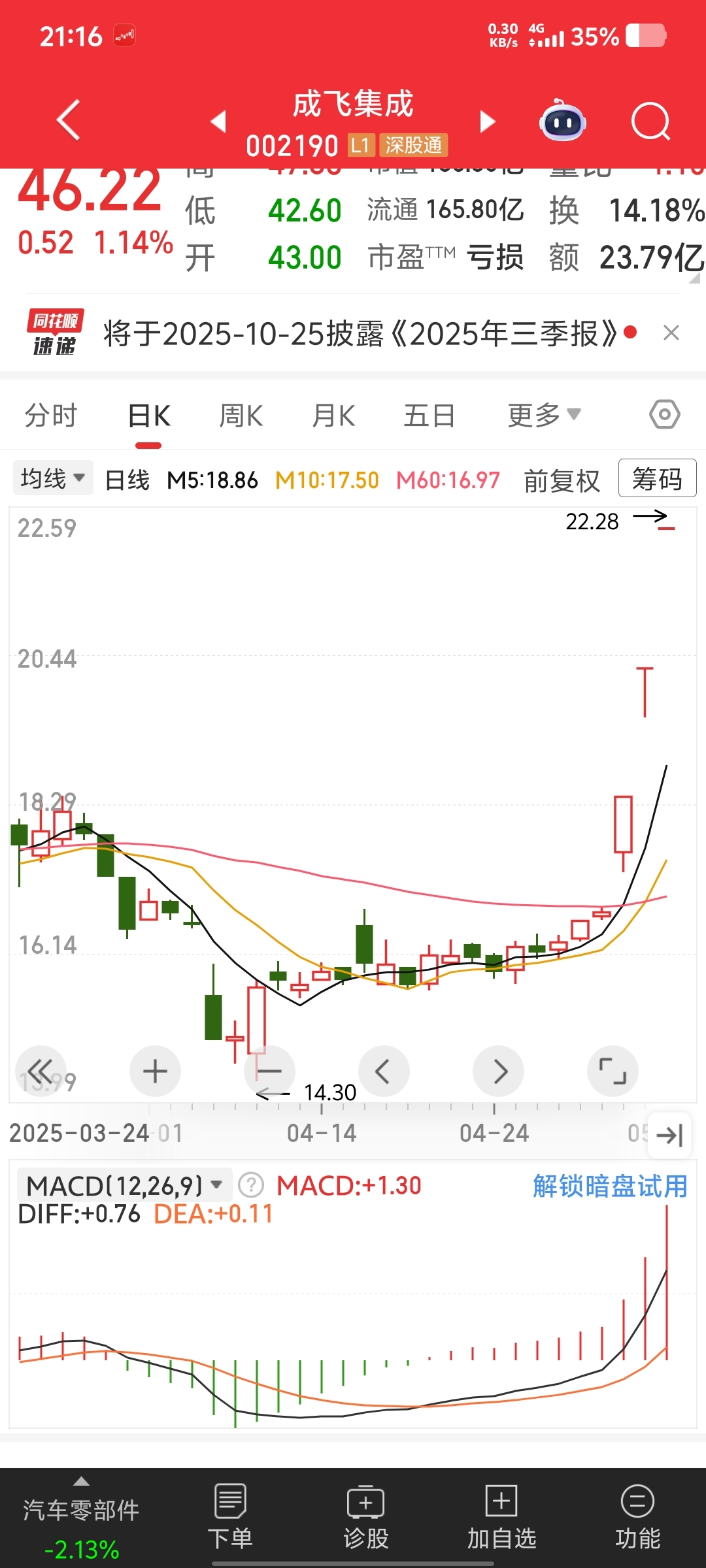 参考成飞集成,形态一模一样,后面肯定还有10个连板。今晚隔夜单挂好了!