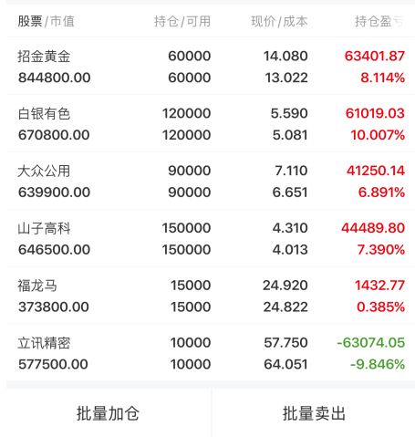 招金黄金:黄J概念,该股均线粘合向上多头排列,周一虽然没有涨停,但该股继续震荡拉升延续上涨趋势,股价开始脱离前高12的支撑,有加速迹象,加上当前行情黑天鹅影响虽然消化的七七八八,但毕竟还处于修复状态,这时候黄J白银等周期品种还有较大冲锋空间,至少他们拥挤度还不高,很多人和机构还挤在科技里面,而且黄J稀土有色目前是今年最靓的仔,和科技牛并驾齐驱,甚至还稳压一头,外围期货有大涨,还有空间。