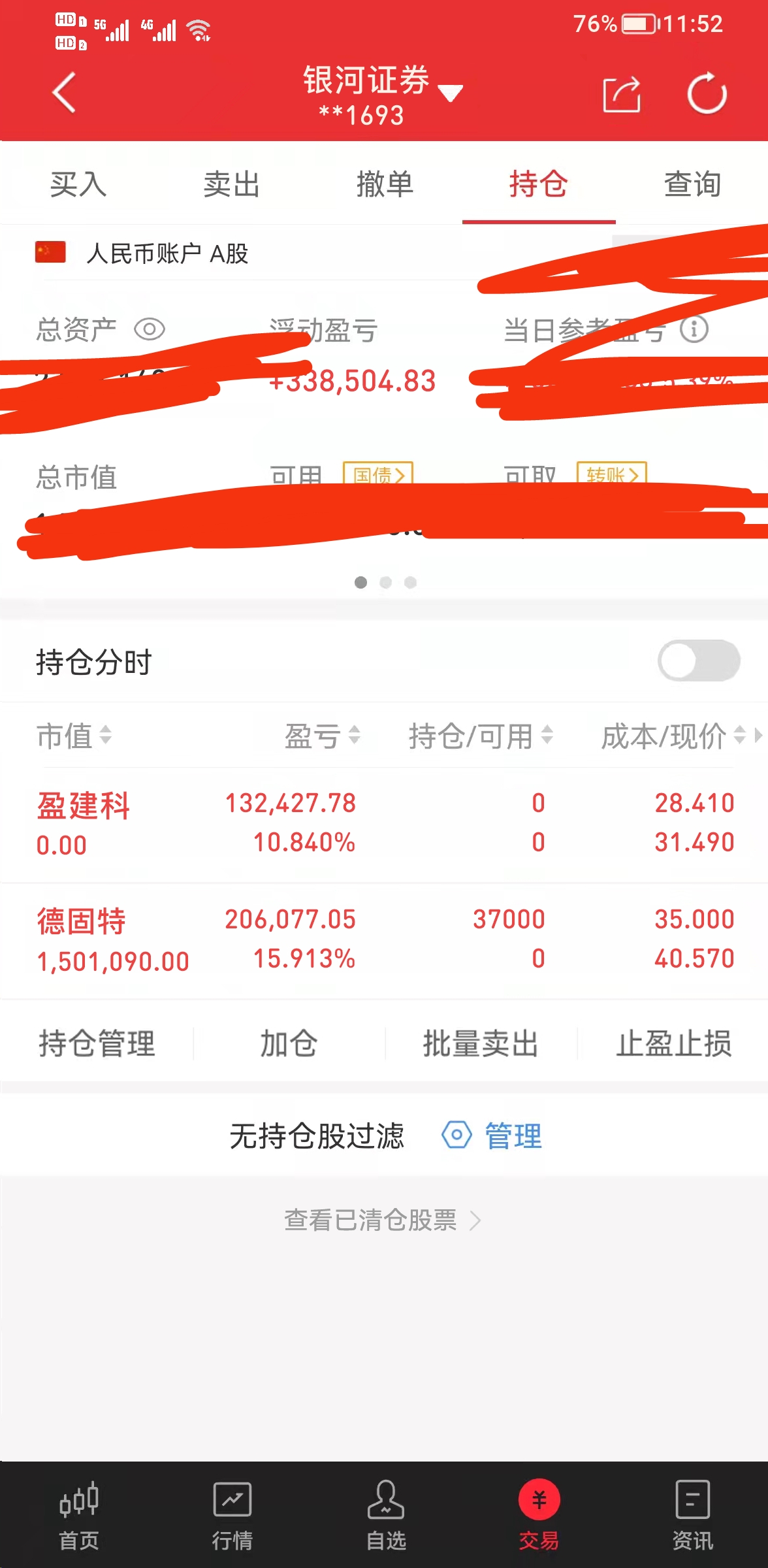 大家中午好,更新一下今日。将盈建科出局10cm落袋为安。新进了德固特,发展趋势很