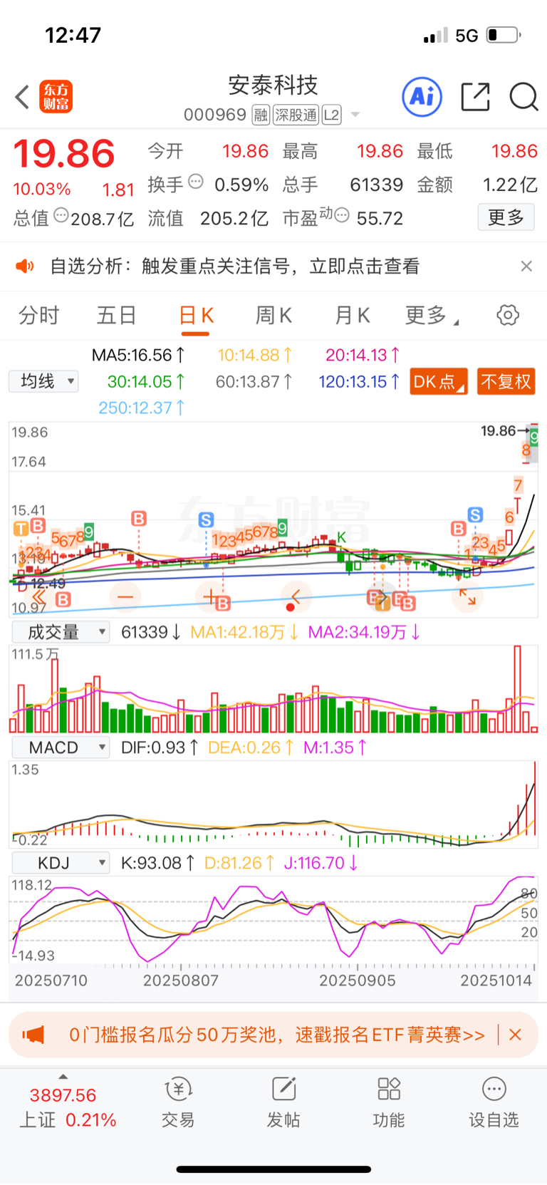 $安泰科技(SZ000969)$ 比起你们买不进的,我这怎么算,即便如此,我也希望安泰能继续创新高,以证明我只是没管住手而不是选错了股,那些说安泰吃独食的,一板二板的时候你们去哪里了,再说了,要是现在真开板,有几个敢真进?踏空了就是踏空了,机会有的是,没必要酸,祝里面的兄弟继续一字板发财
