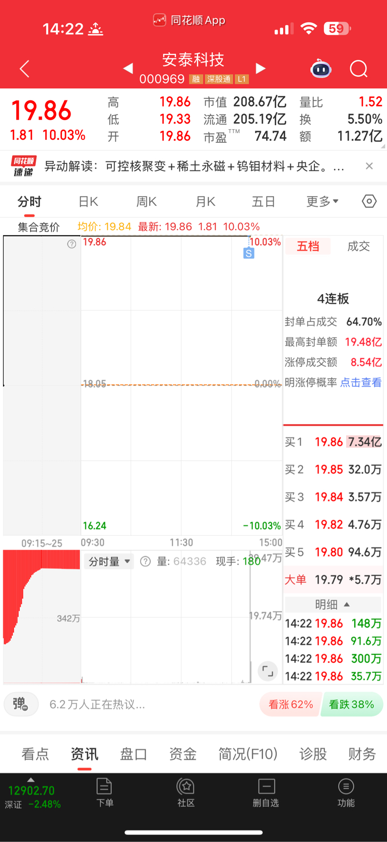 $安泰科技(SZ000969)$ 炸板被洗了 可惜 在车上的发财
