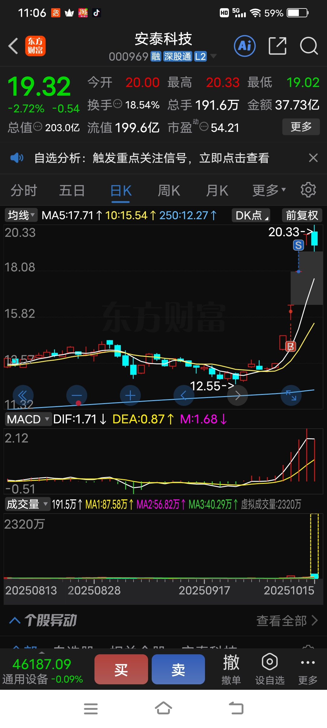 $安泰科技(SZ000969)$ 看今天的走势我也没什么后悔的了!