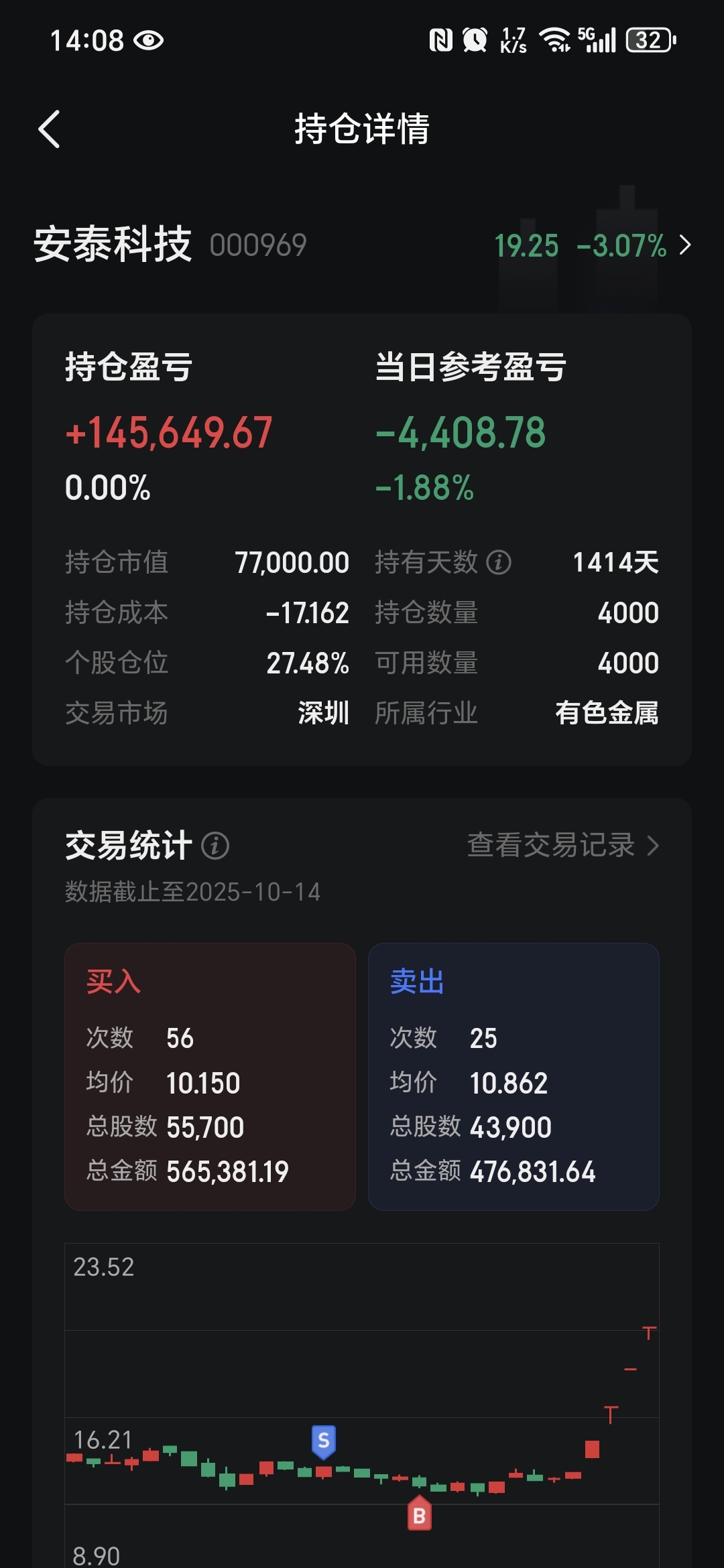 $安泰科技(SZ000969)$ 今天双冰,主线全噶,但是京泉华,三花有表现,明天大概率带机器人修复,所以安泰还是先走大部分,我留下40手底仓看家博后续修复就行。大家发财。
