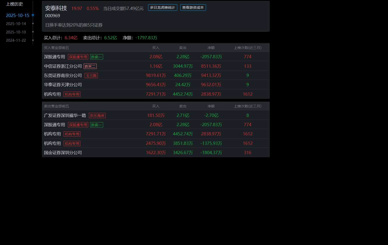 安泰科技今日游资龙虎榜席位上榜数据如下!