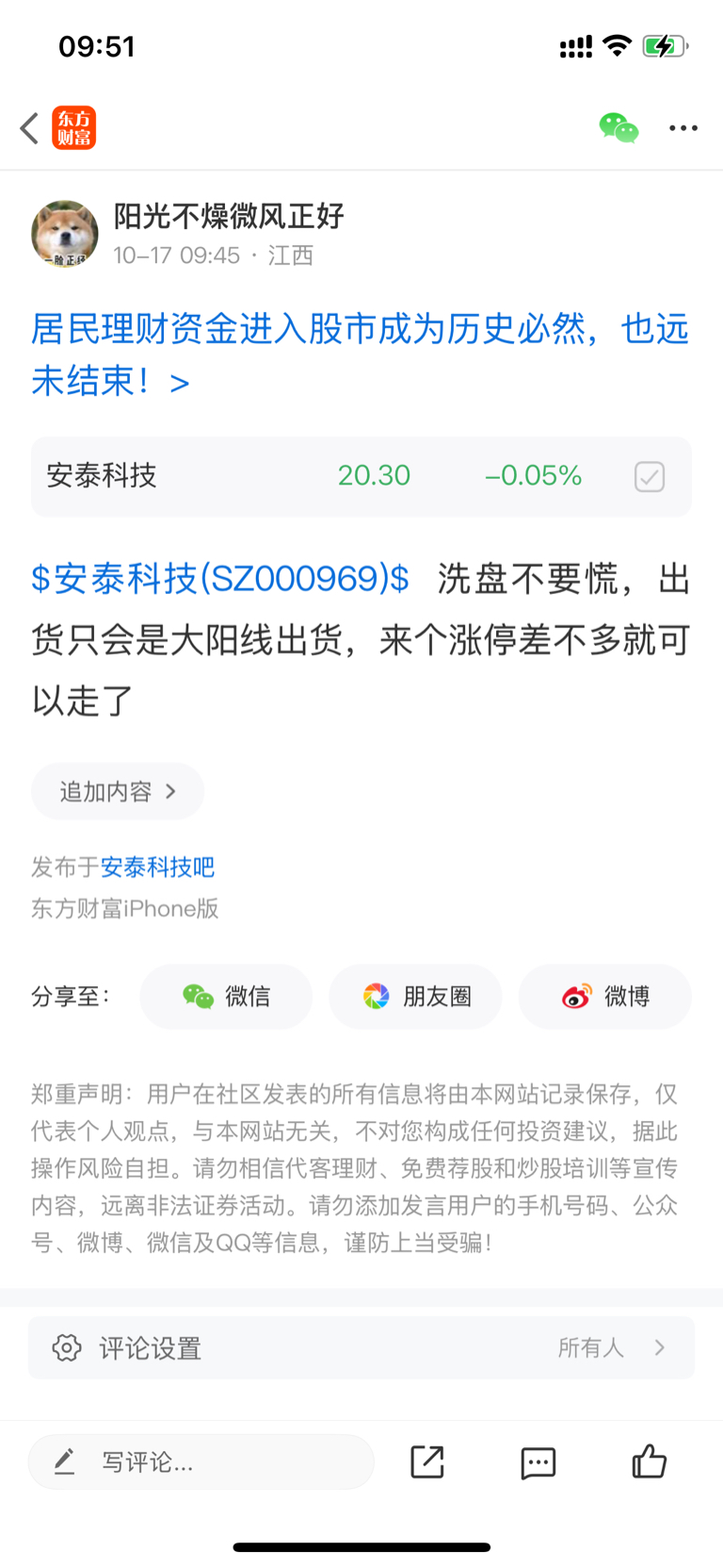 温馨提示: 1.根据《证券法》规定,禁止编造、传播虚假信息或者误导性信息,扰乱证券市场;2.用户在本社区发表的所有资料、言论等仅代表个人观点,与本网站立场无关,不对您构成任何投资建议。用户应基于自己的独立判断,自行决定证券投资并承担相应风险。《东方财富社区管理规定》