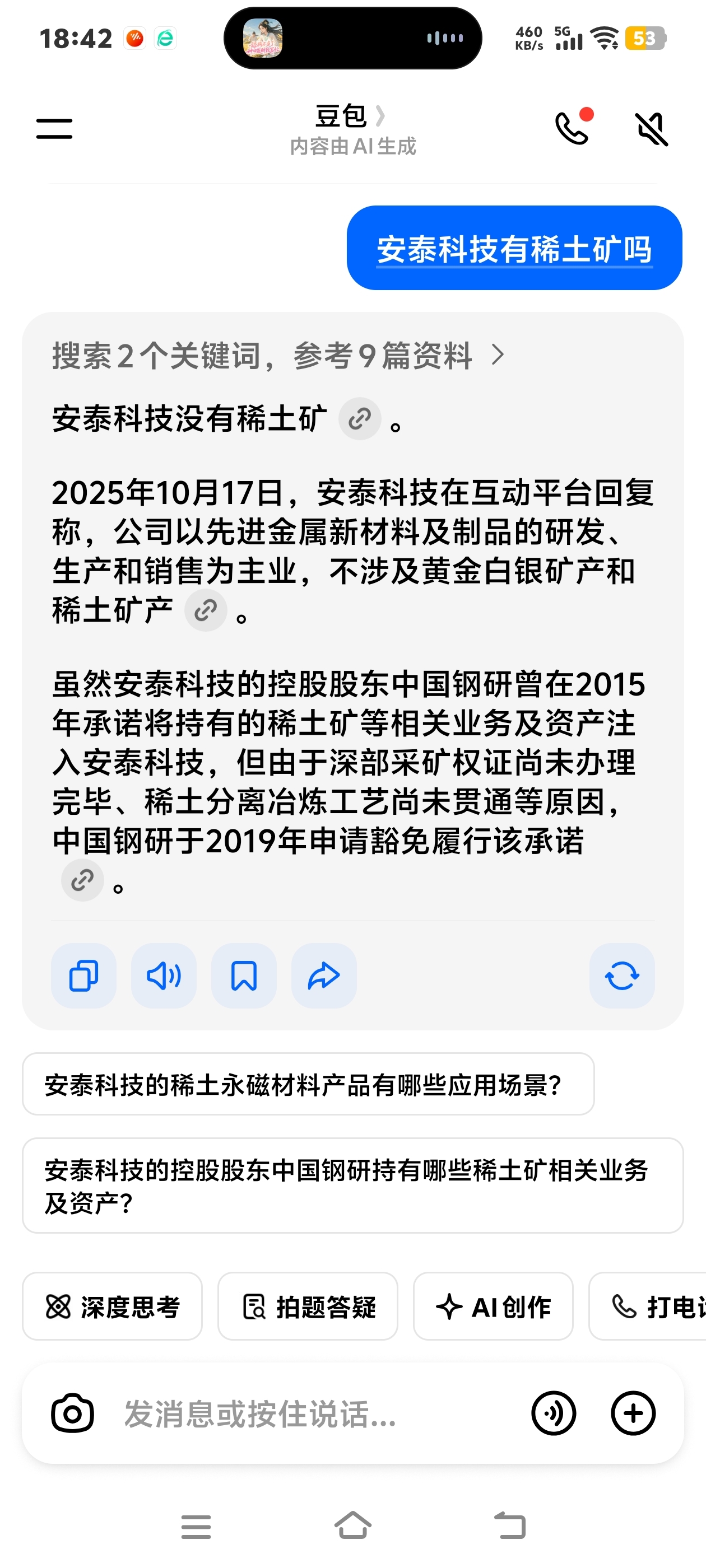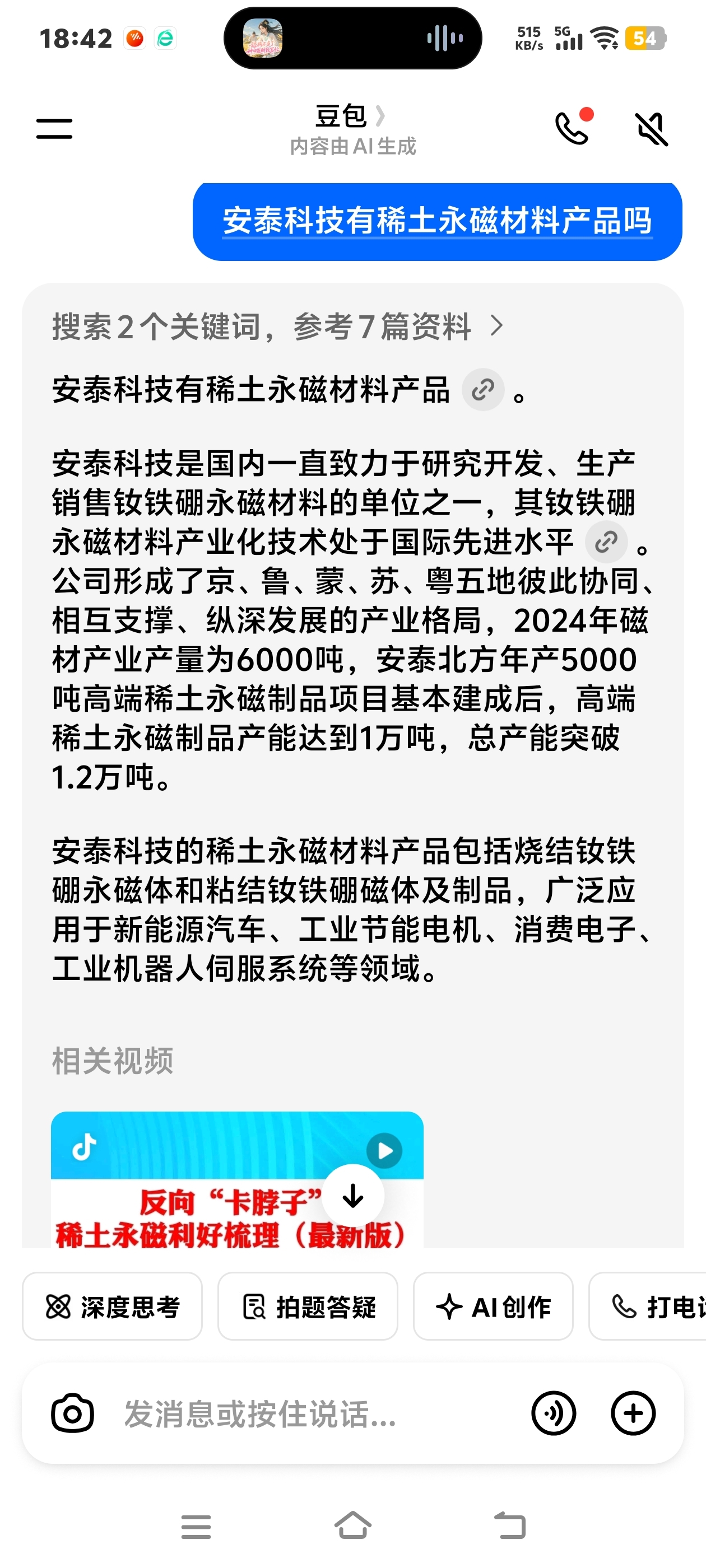 安泰科技没有稀土矿,但有稀土永磁材料制品。