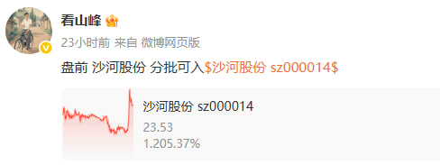 沙河股份近期趋势还不错,加上房地产板块还可以,今天看到他发出来进了点,还冲上去了,观察了这两天,他还挺稳的了