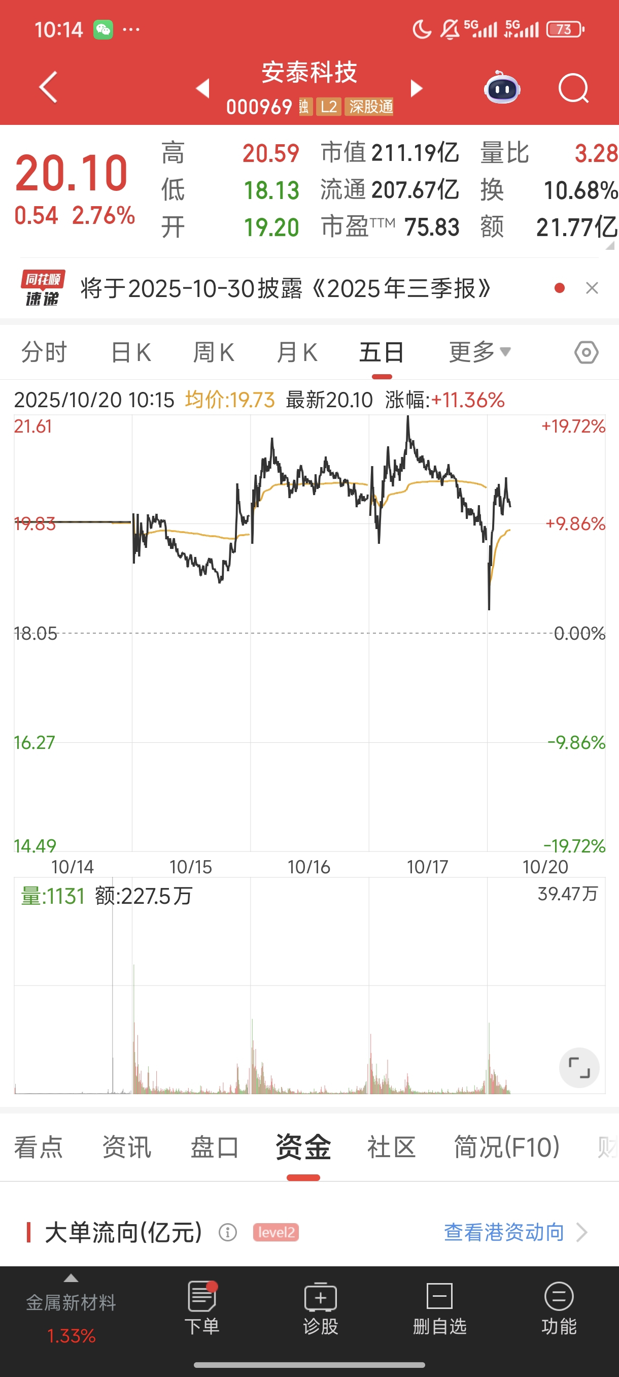 $安泰科技(SZ000969)$ 从图形来看不太妙 尾盘会回落 我居然进来了