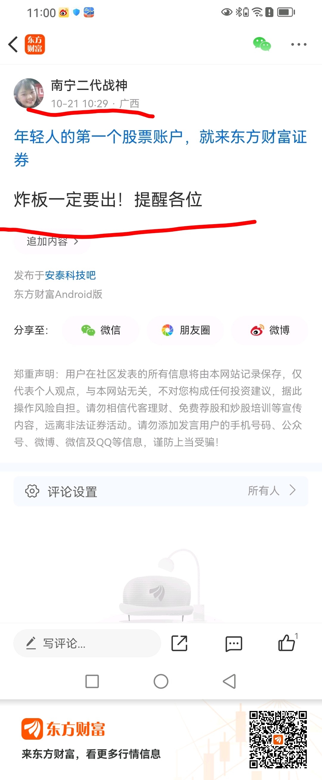 温馨提示: 1.根据《证券法》规定,禁止编造、传播虚假信息或者误导性信息,扰乱证券市场;2.用户在本社区发表的所有资料、言论等仅代表个人观点,与本网站立场无关,不对您构成任何投资建议。用户应基于自己的独立判断,自行决定证券投资并承担相应风险。《东方财富社区管理规定》