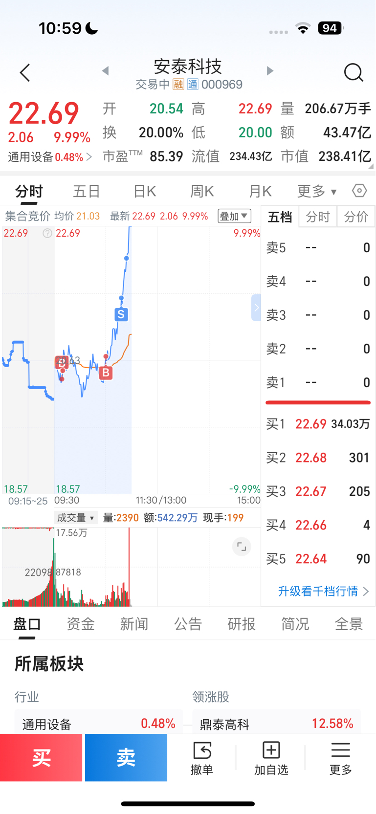 $安泰科技(SZ000969)$ 这个票今天早盘没有卖点,打到支撑附近,就拉上去了。那就很明确了,找机会加仓。昨天尾盘进,博弈的就是这个烂板的弱转强。这种越丑,走得越慢的K线,越代表真金白银,封板概率越大。