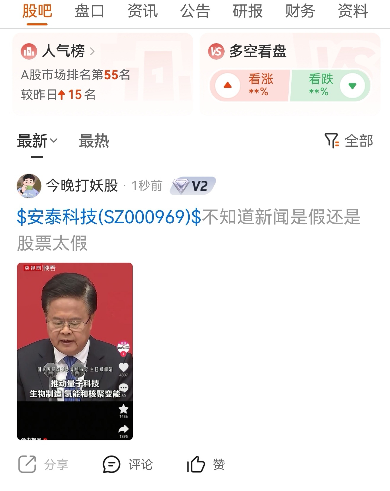 温馨提示: 1.根据《证券法》规定,禁止编造、传播虚假信息或者误导性信息,扰乱证券市场;2.用户在本社区发表的所有资料、言论等仅代表个人观点,与本网站立场无关,不对您构成任何投资建议。用户应基于自己的独立判断,自行决定证券投资并承担相应风险。《东方财富社区管理规定》