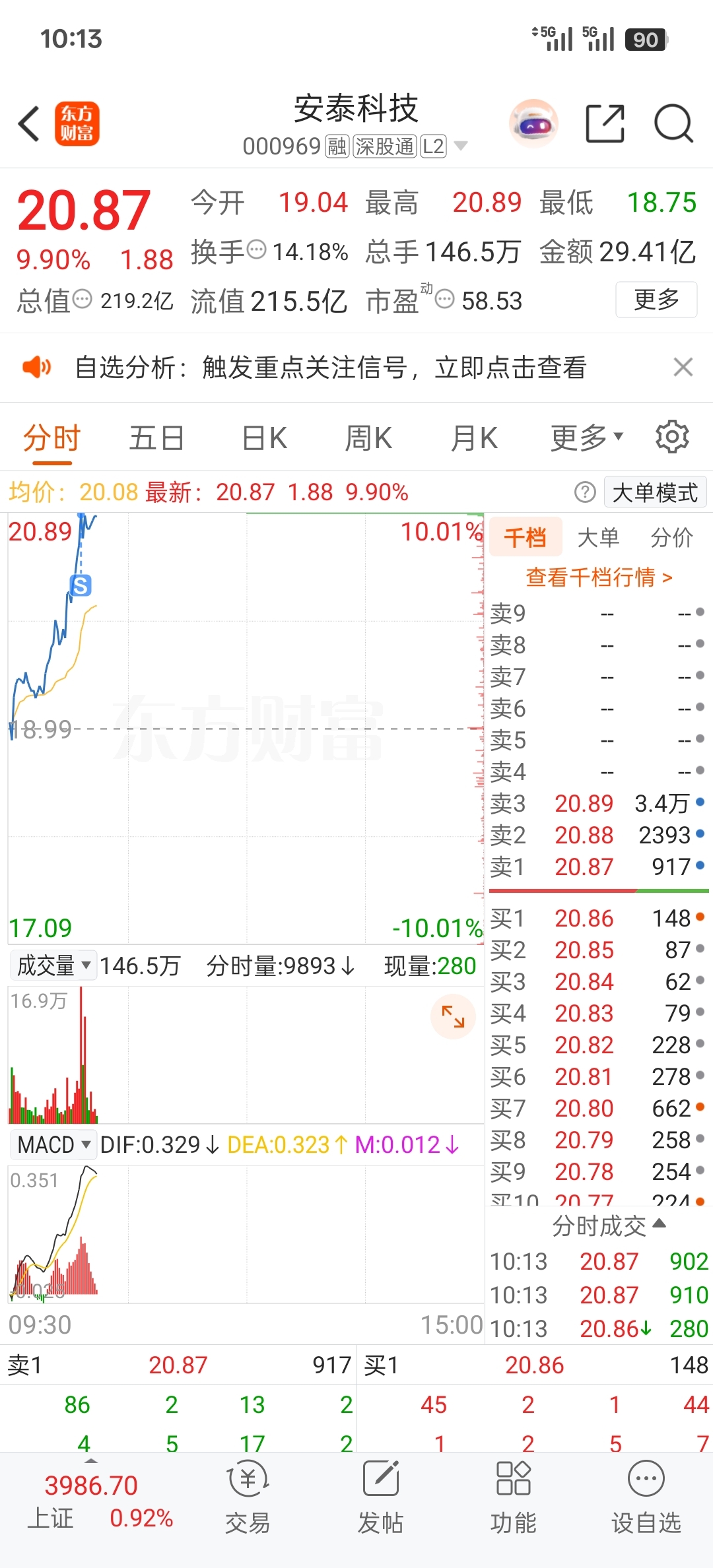 $安泰科技(SZ000969)$ 还没进的不建议再进了,大盘放巨量今天要是过不了4000明天全都得吃面
