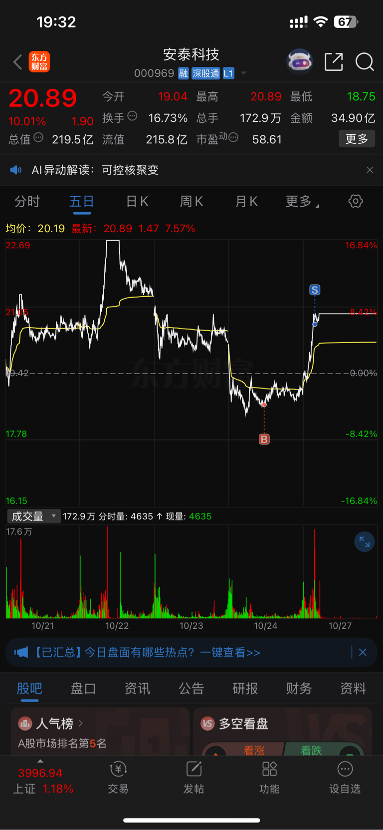 $安泰科技(SZ000969)$ 没啥好后悔的,最起码我获利了,这次如果真的被洗出去了,那也让我多了些经验