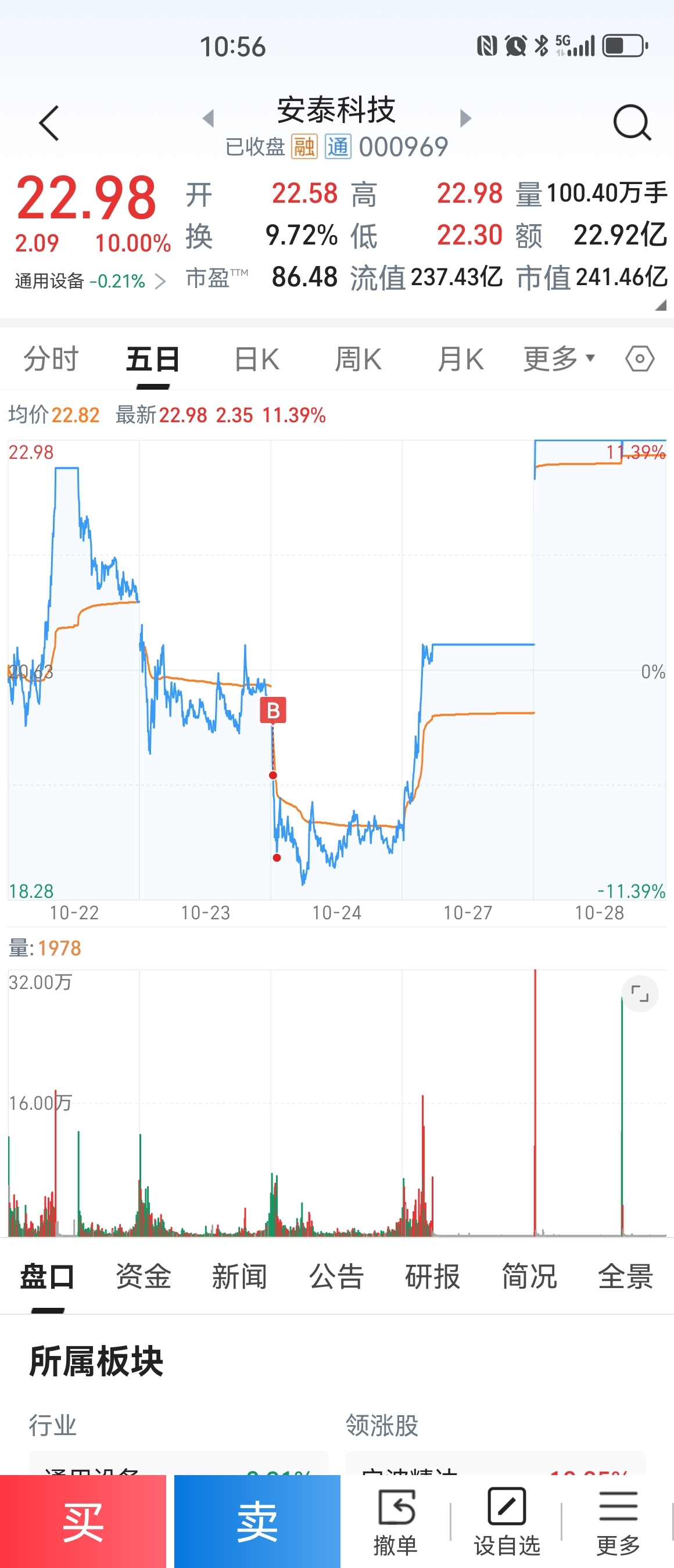 24号新参与股票交易的小白,入手了两支,卖掉了一支,想请教安泰科技什么时候抛合适
