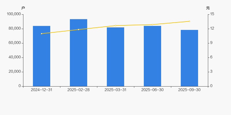 截至2025年9月30日,公司最新总股本为10.51亿股,其中流通股本为10.33亿股。户均持有流通股数量由上期的1.23万股上升至1.32万股,户均流通市值17.87万元。