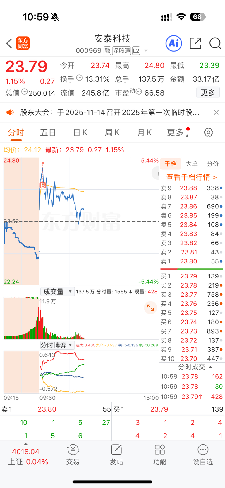 $安泰科技(SZ000969)$ 哭了,昨天一个点卖,今天五个点追了
