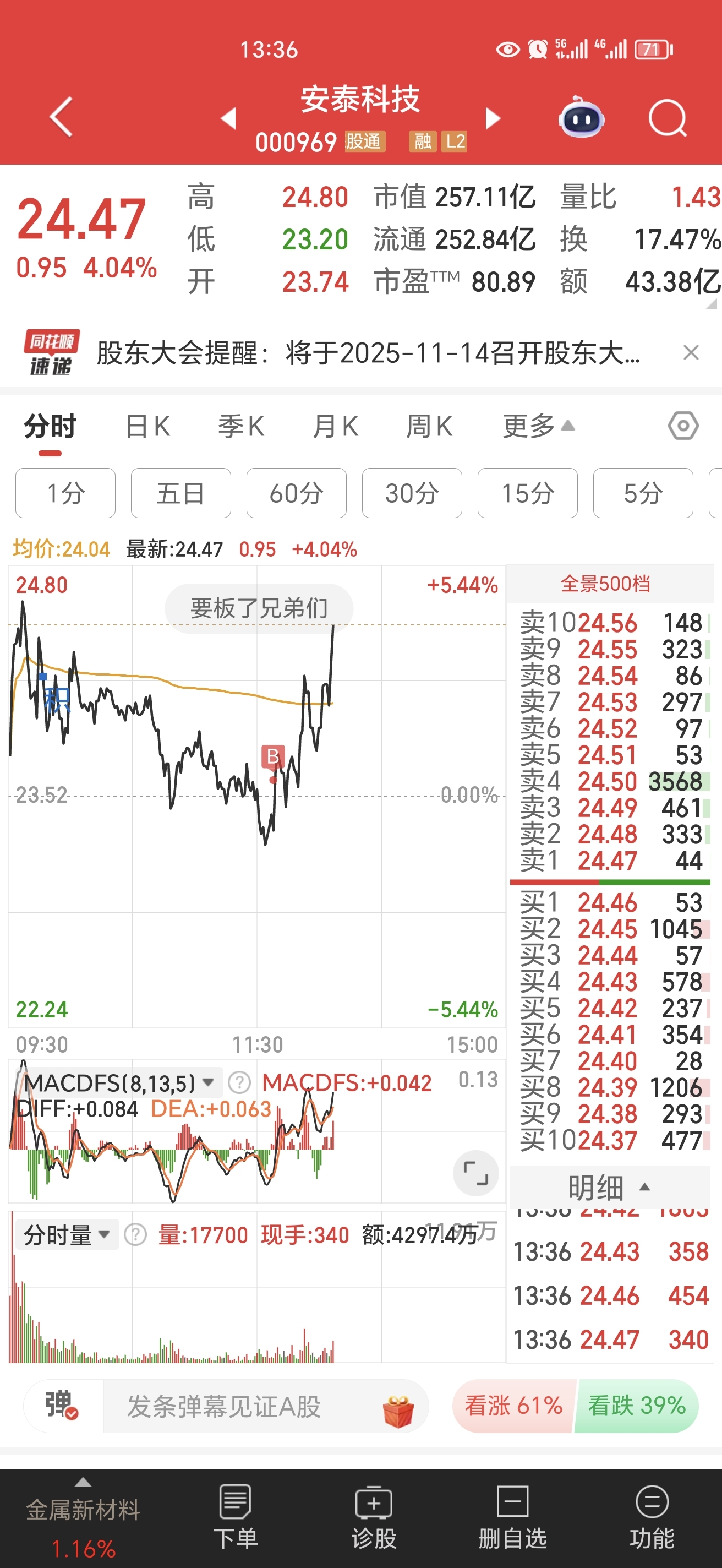 $安泰科技(SZ000969)$ 补到半仓,随便你怎么走了