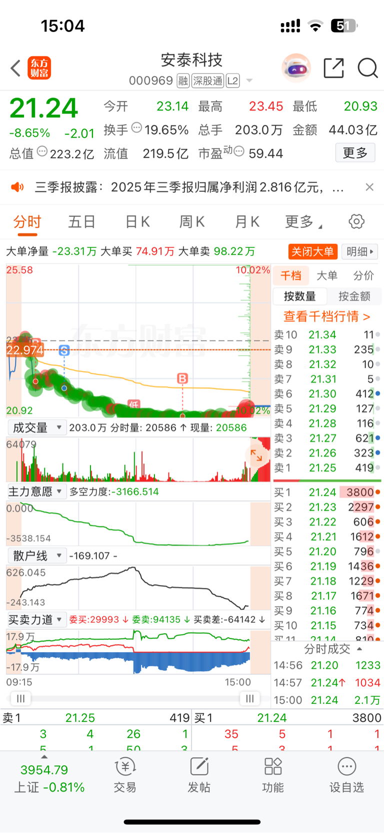 $安泰科技(SZ000969)$  今天有个跌停板的票,第一次没有恐慌的割肉,反而补了仓,虽然有个声音告诉我要割肉,但是我不要,我要赌一把 希望能解套,甚至赚钱吧