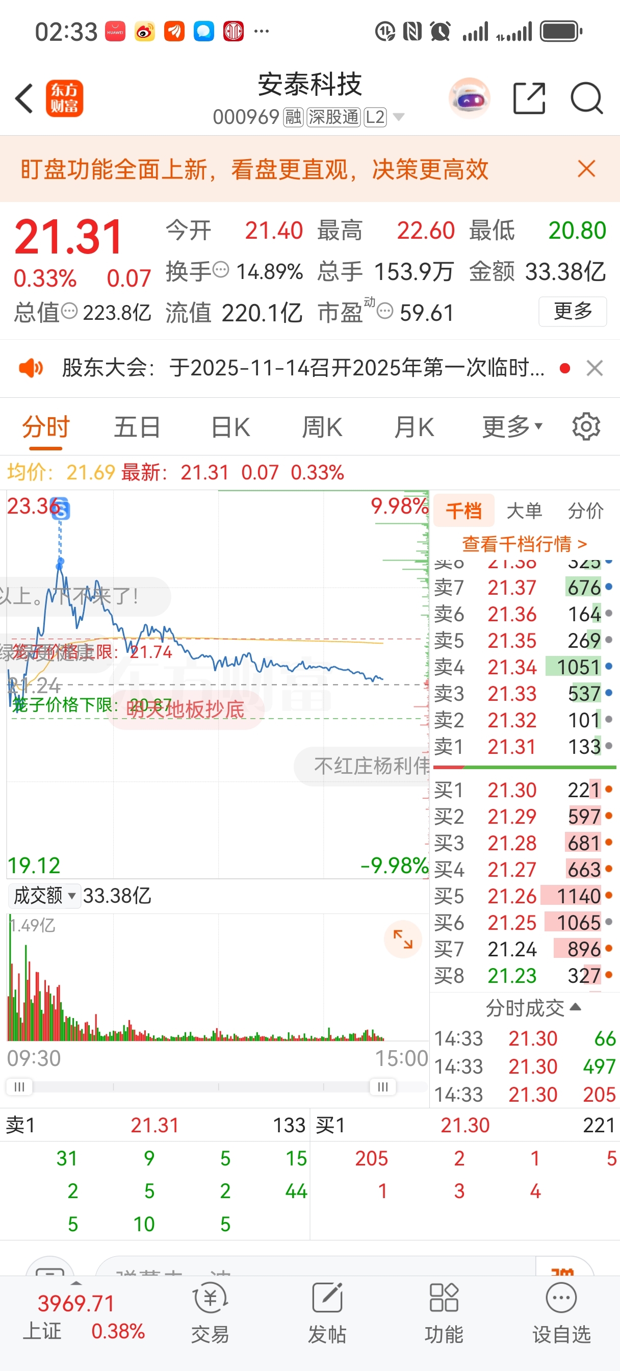 $安泰科技(SZ000969)$ 今天拉高22.59卖了!明天水下看情况再说!