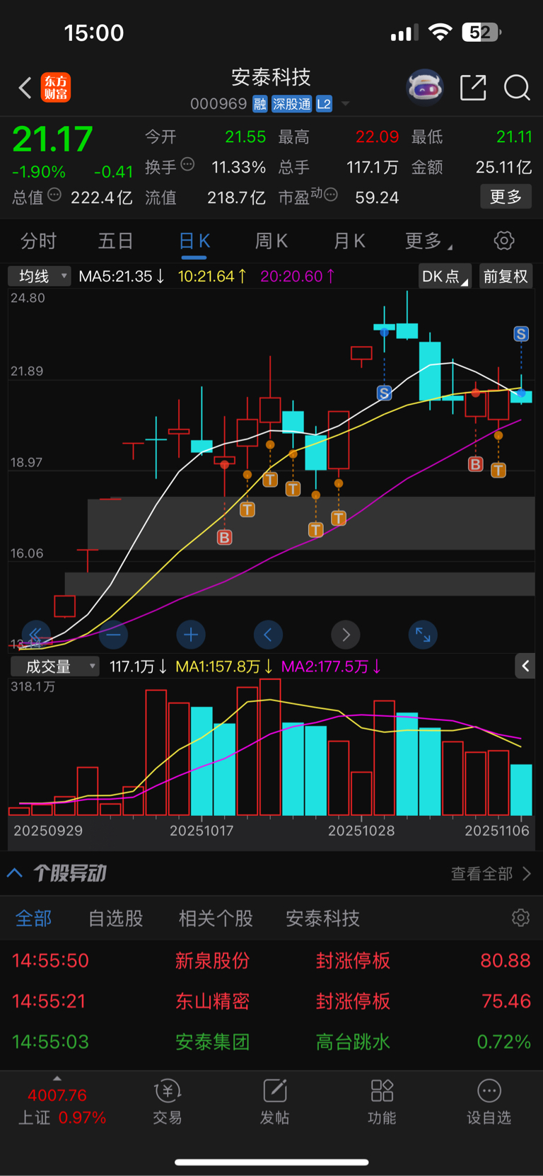 $安泰科技(SZ000969)$ 跟中核一起摆不跟大盘了,先撤,缩量变盘概率高,明天能高开就接回