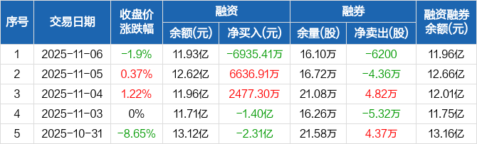 安泰科技:融资净偿还6935.41万元,融资余额11.93亿元(11-06)