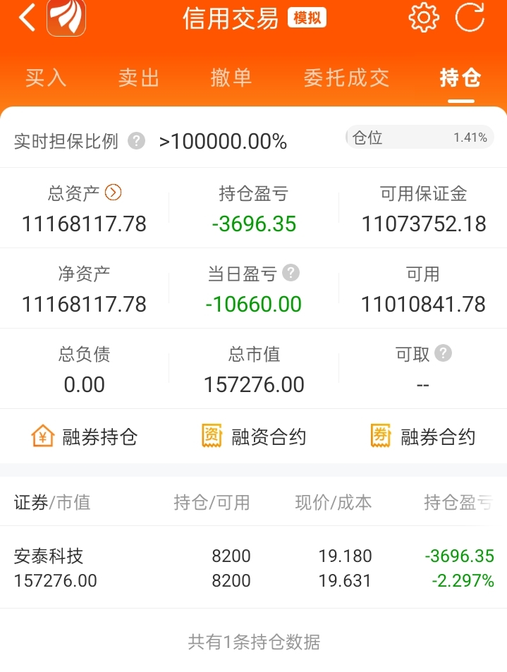 在安泰做空赚了100万,给爷继续跌