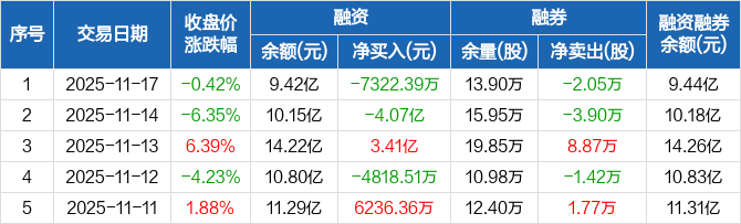 安泰科技:融资净偿还7322.39万元,融资余额9.42亿元(11-17)