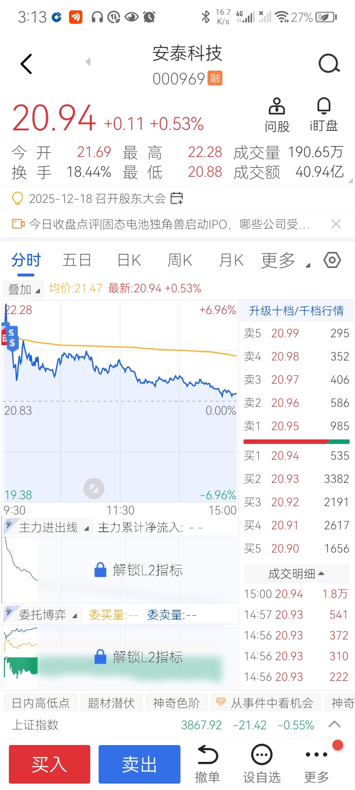 $安泰科技(SZ000969)$ 早上买在最高点,唉
