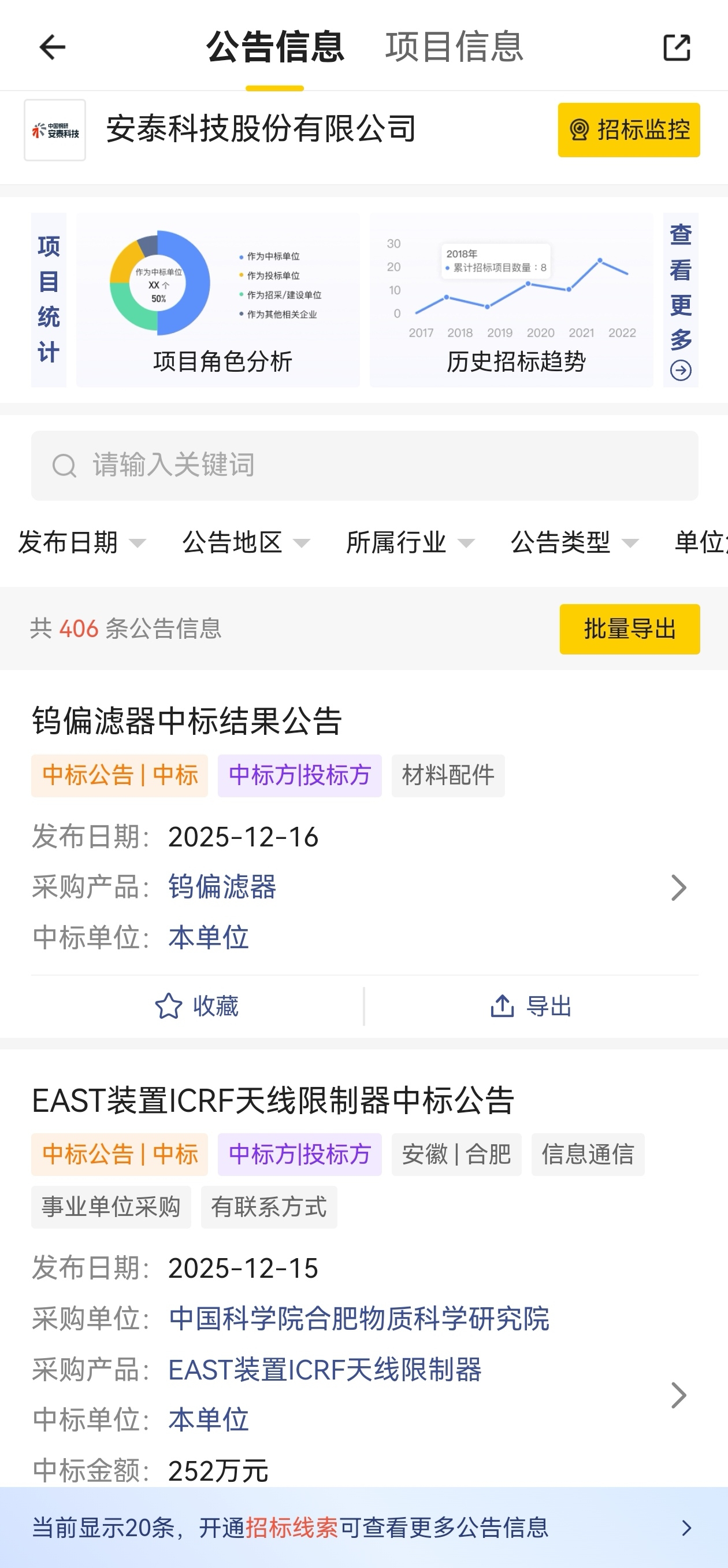 前两天,安泰科技在核聚变相关的小项目又中标了2个,希望接下来源源不断中标,特别是