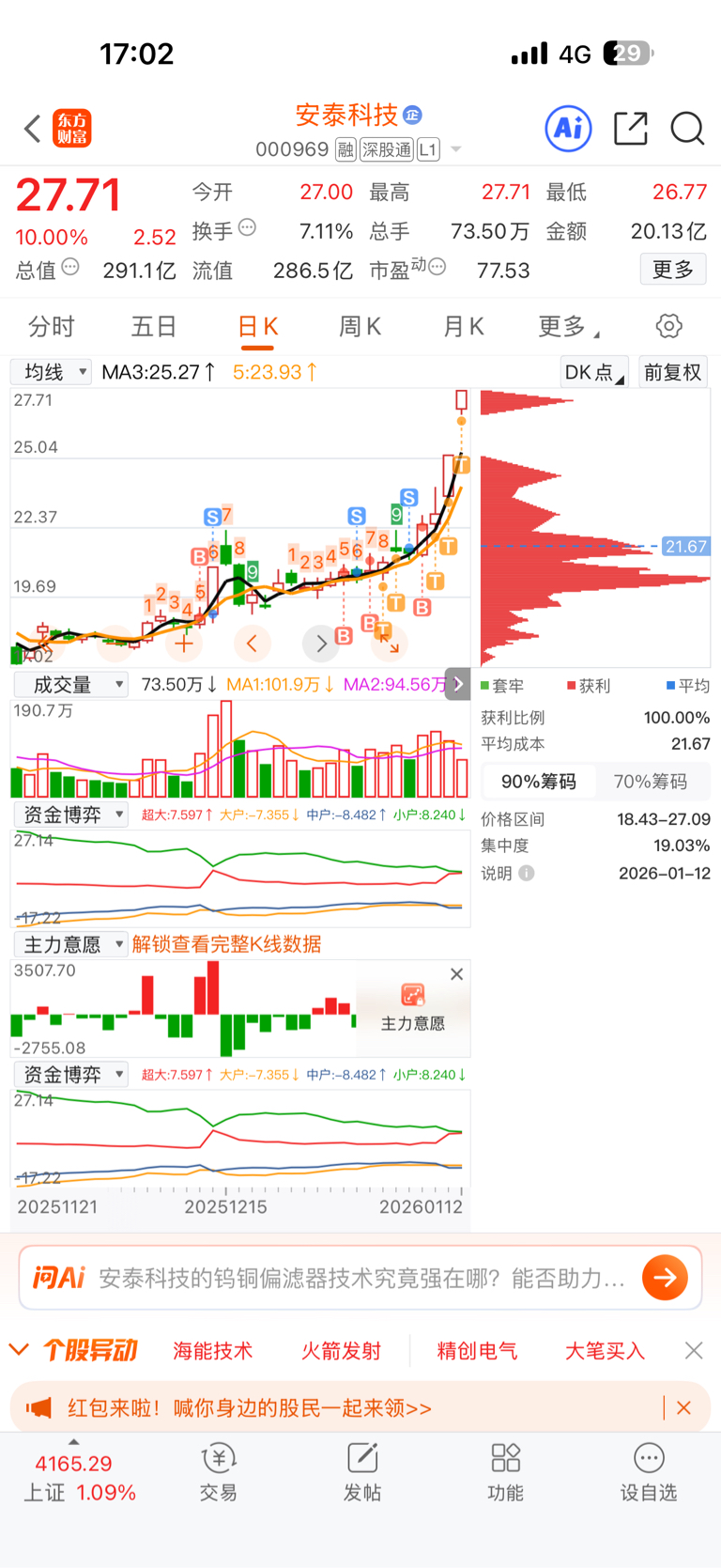 $安泰科技(SZ000969)$ 20拿到现在