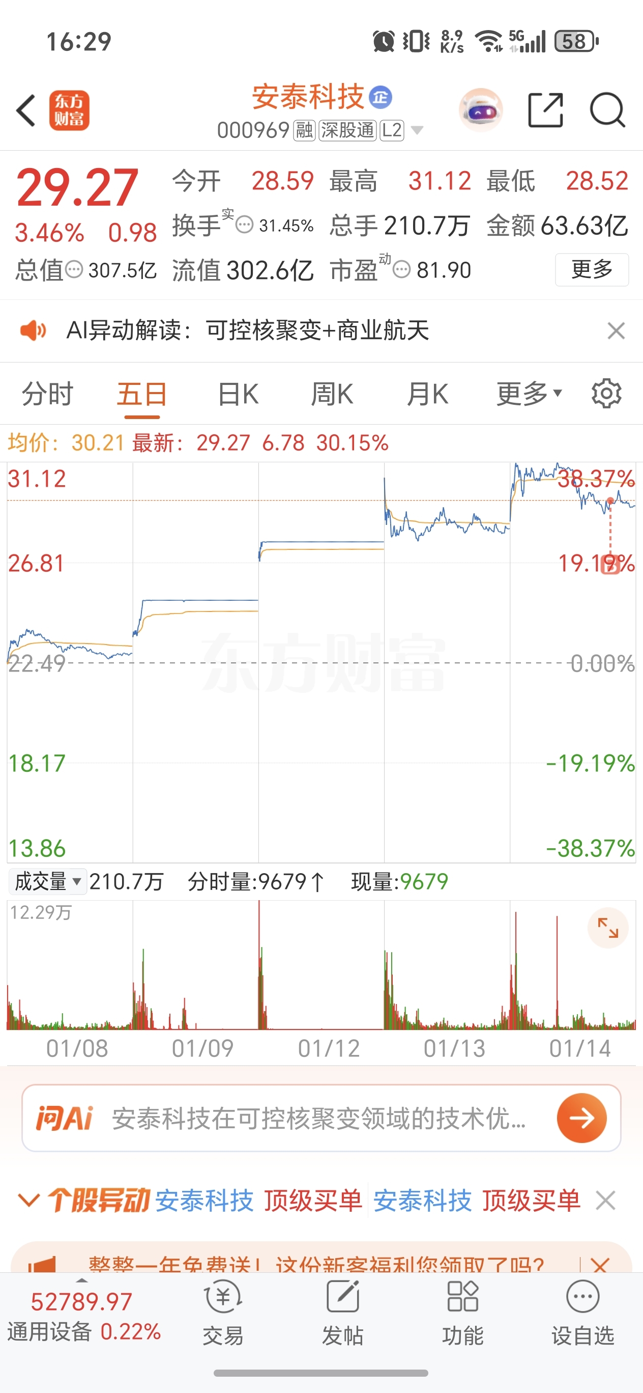 额。看好明天的修复拿个先手。昨天早盘跟着高位一起杀下来,早上也是核聚变板块里面最