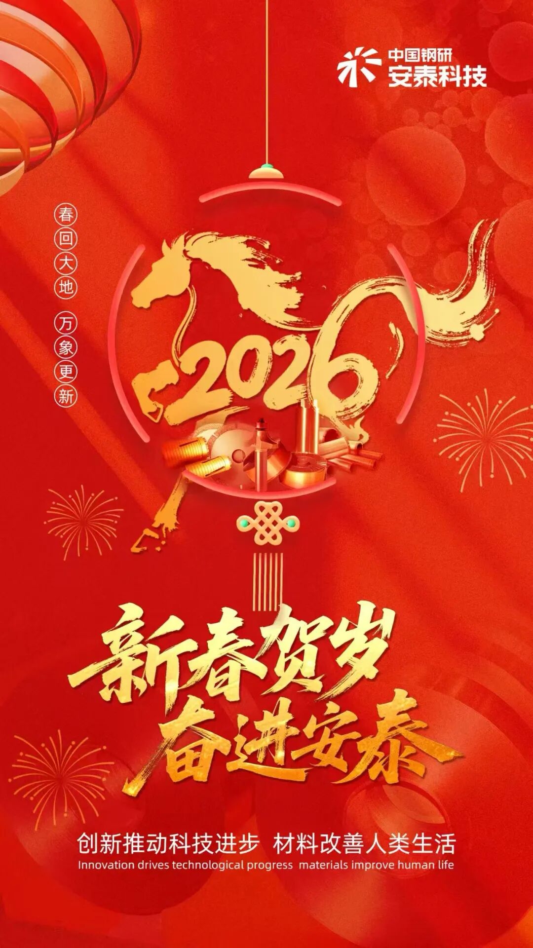 安泰科技,大家成就;科技安泰,成就大家!祝各位朋友马踏飞燕,马到成功。2026马