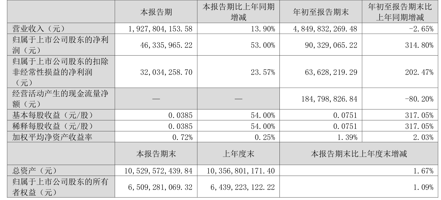 中证智能财讯中科三环(000970)10月31日披露2025年第三季度报告。前三季度公司实现营业总收入48.5亿元,同比下降2.65%;归母净利润9032.91万元,同比扭亏;扣非净利润6362.82万元,同比扭亏;经营活动产生的现金流量净额为1.85亿元,同比下降80.20%;报告期内,中科三环基本每股收益为0.0751元,加权平均净资产收益率为1.39%。