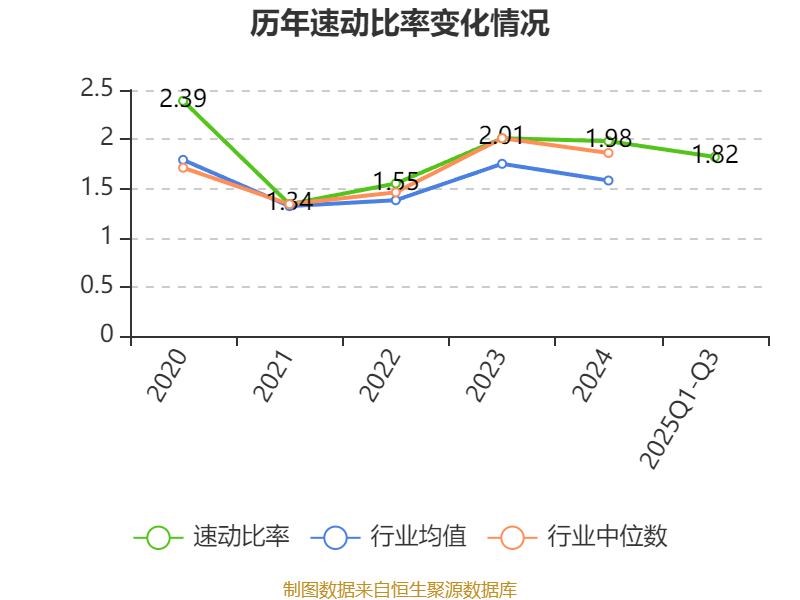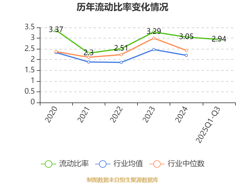2025年前三季度,公司流动比率为2.94,速动比率为1.82。