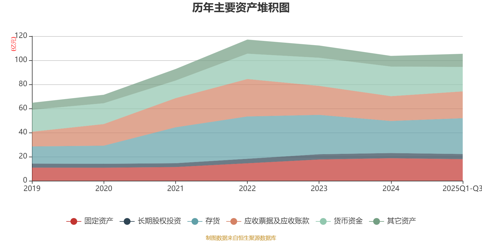 资产重大变化方面,截至2025年三季度末,公司货币资金较上年末减少17.37%,占公司总资产比重下降4.45个百分点;存货较上年末增加11.67%,占公司总资产比重上升2.53个百分点;交易性金融资产合计较上年末增加398.56%,占公司总资产比重上升1.9个百分点;应收票据及应收账款较上年末增加8.16%,占公司总资产比重上升1.27个百分点。
