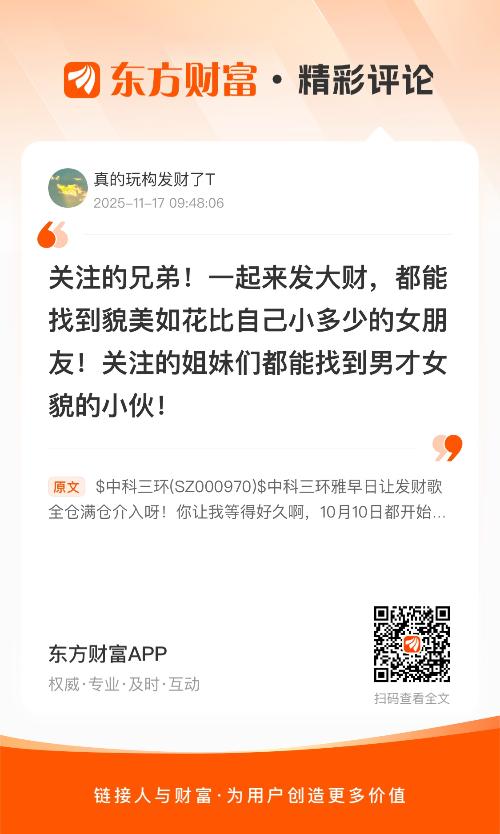//@真的玩构发财了T : 回复 大方的小莫 :关注的兄弟!一起来发大财,都能找到貌美如花比自己小多少的女朋友!关注的姐妹们都能找到男才女貌的小伙!