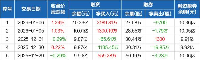 中科三环:融资净买入3189.81万元,融资余额10.33亿元(01-06)