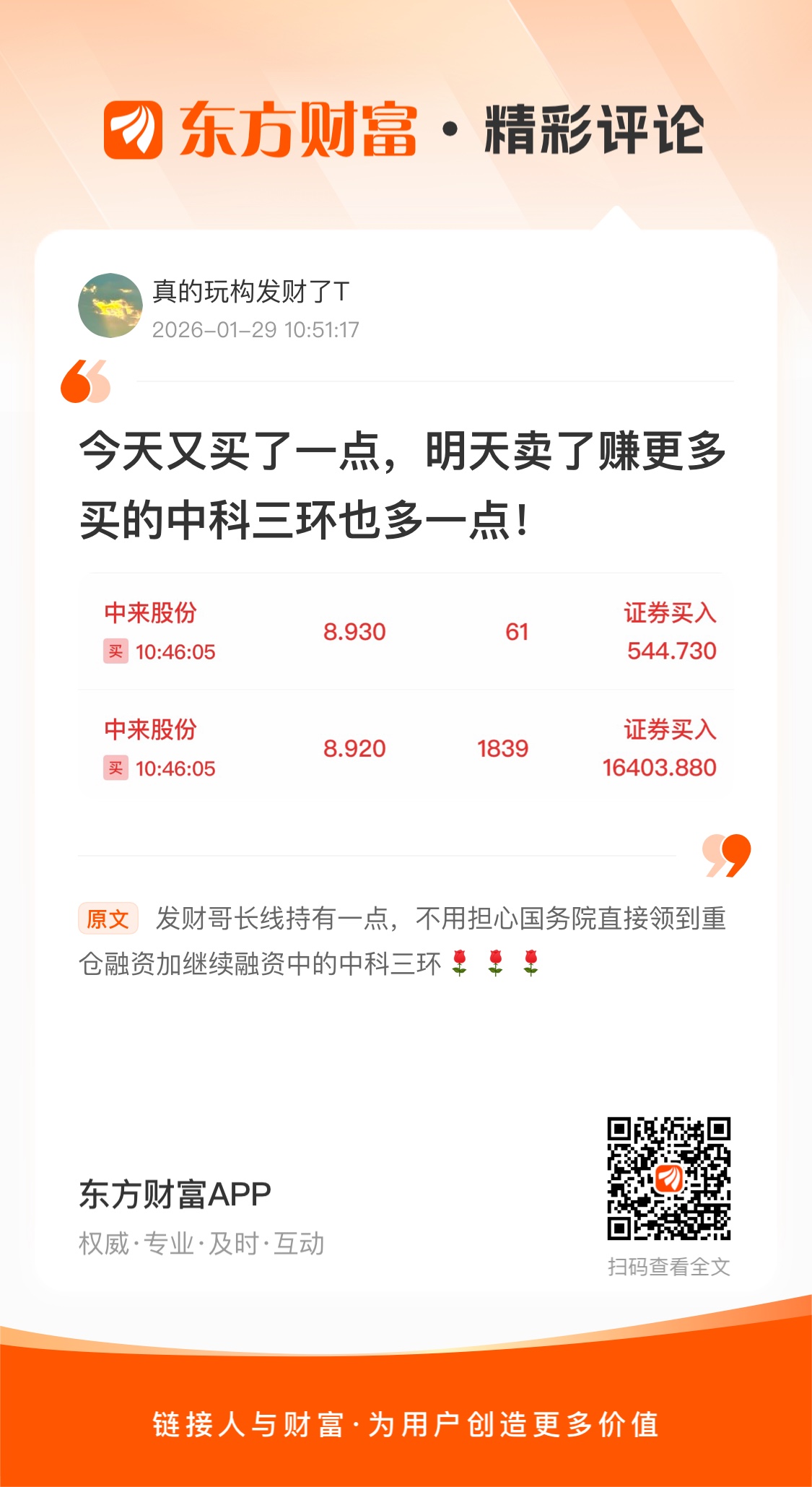 发财哥长线持有一点,不用担心国务院直接领到重仓融资加继续融资中的中科三环