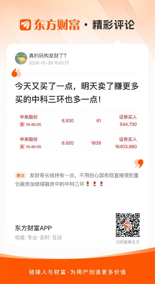 温馨提示: 1.根据《证券法》规定,禁止编造、传播虚假信息或者误导性信息,扰乱证券市场;2.用户在本社区发表的所有资料、言论等仅代表个人观点,与本网站立场无关,不对您构成任何投资建议。用户应基于自己的独立判断,自行决定证券投资并承担相应风险。《东方财富社区管理规定》