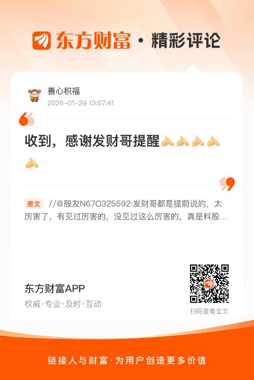 温馨提示: 1.根据《证券法》规定,禁止编造、传播虚假信息或者误导性信息,扰乱证券市场;2.用户在本社区发表的所有资料、言论等仅代表个人观点,与本网站立场无关,不对您构成任何投资建议。用户应基于自己的独立判断,自行决定证券投资并承担相应风险。《东方财富社区管理规定》
