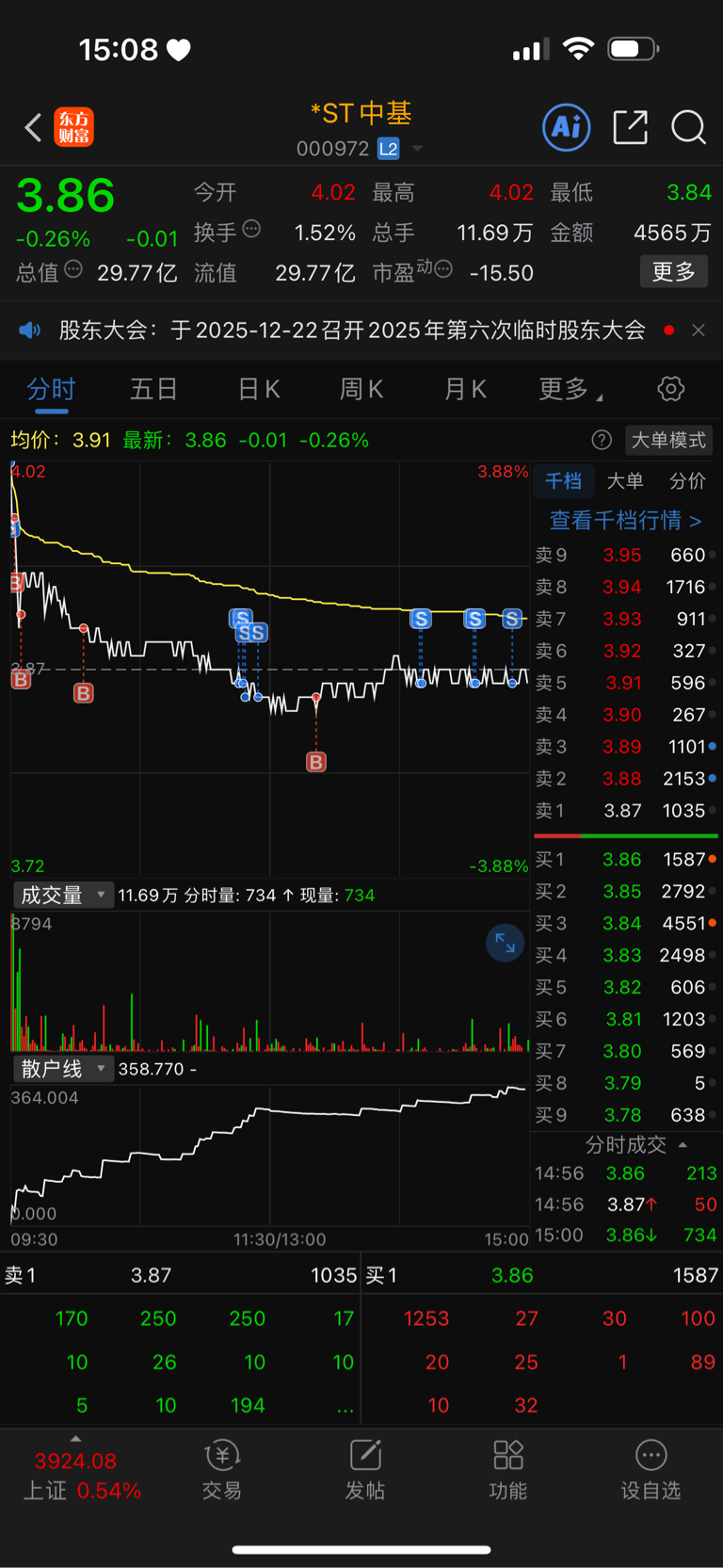 $*ST中基(SZ000972)$ 跟着主力一起跑了,这么大利好搁以前早就一字顶板了,居然还绿,说明公司全力保壳,重整肯定放弃了,保壳就是3元以下了!