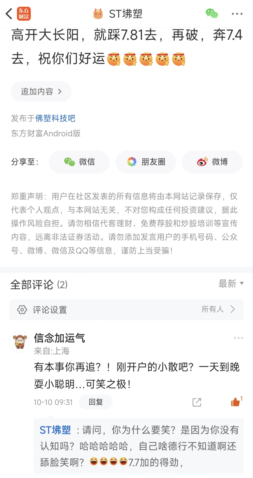 温馨提示: 1.根据《证券法》规定,禁止编造、传播虚假信息或者误导性信息,扰乱证券市场;2.用户在本社区发表的所有资料、言论等仅代表个人观点,与本网站立场无关,不对您构成任何投资建议。用户应基于自己的独立判断,自行决定证券投资并承担相应风险。《东方财富社区管理规定》