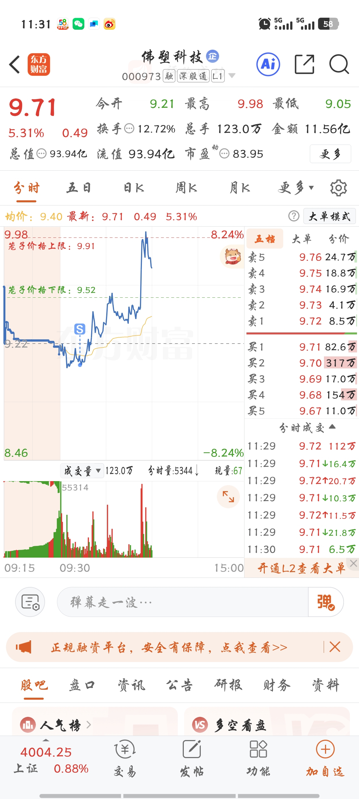 $佛塑科技(SZ000973)$ 无缘,早上急切换股了,兄弟们发财,确实基本面还好,每天都释放前一天的最高点套牢盘